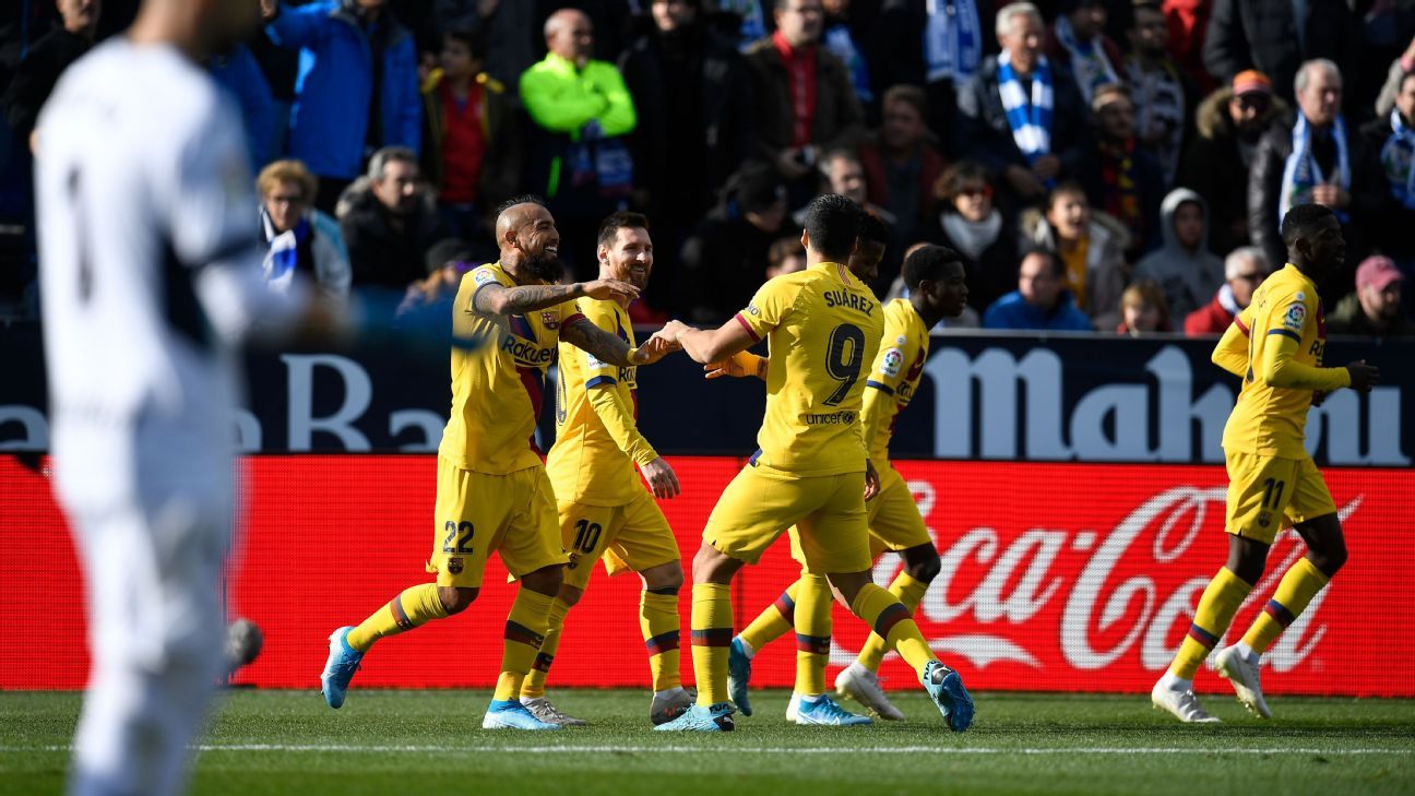 Arturo Vidal struck 11 minutes from time to earn Barcelona a 2-1 victory away at Leganes on Saturday.