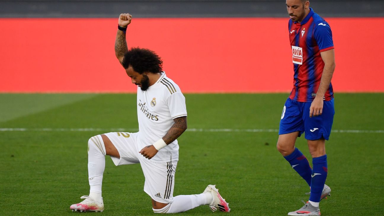 Real Madrid left-back Marcelo took a knee and raised his fist after scoring in a 3-1 La Liga victory over Eibar on Sunday.