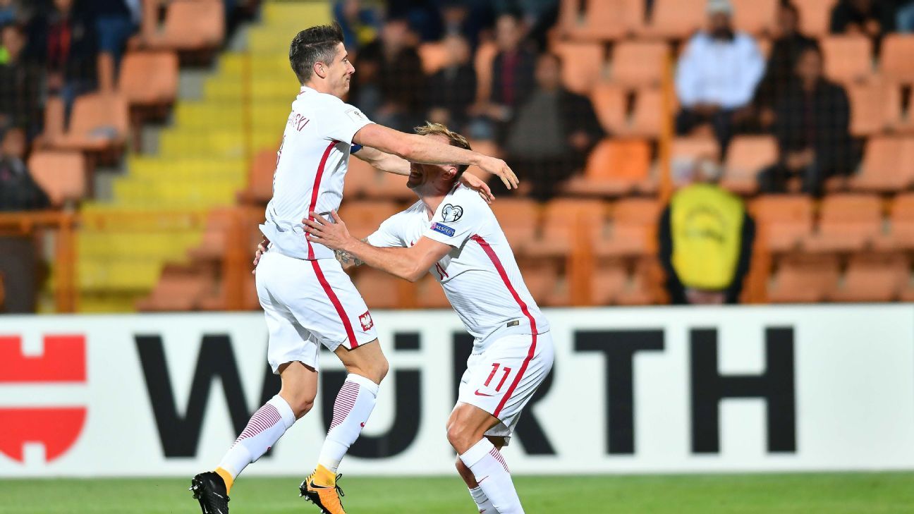 The 6-1 win puts Poland on the doorstep of qualifying for Russia with a six-point lead in Group E over both Montenegro and Denmark, who play each other later on Thursday.